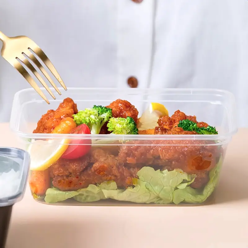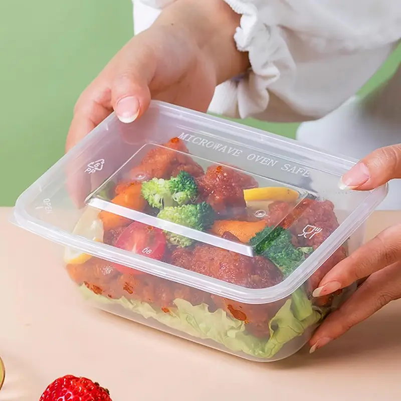 Ningbo Powerr levererar lågpris 750 ml klar rektangulär plastmatbehållare i Kina. Tillverkad av säkert material, den rymmer varma måltider, kan kylas eller värmas i mikrovågsugn kort, utan lukt eller deformation. Dess 750 ml gyllene kapacitet passar perfekt för en enda persons fulla måltid, och rymmer huvud- och tillbehör utan avfall. Den tätt förslutna basen och locket förhindrar soppläckage, lämplig för fräsig mat. Dess topp bredare, botten smalare design säkerställer stabil stapling, bekvämt för handlarnas bulkförberedelser och användarnas förvaring samtidigt som utrymmet maximeras. Tydliga versioner visar mat tydligt, svarta döljer rester; anpassade färger, tryck och nya verktyg är också tillgängliga.